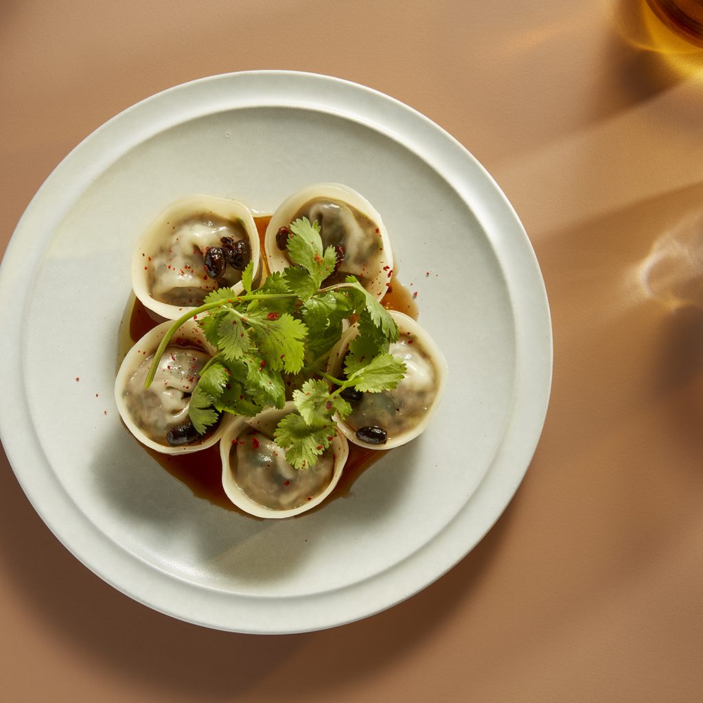マッシュルームとクワイの蒸し餃子 豆鼓と白醤油のドレッシング